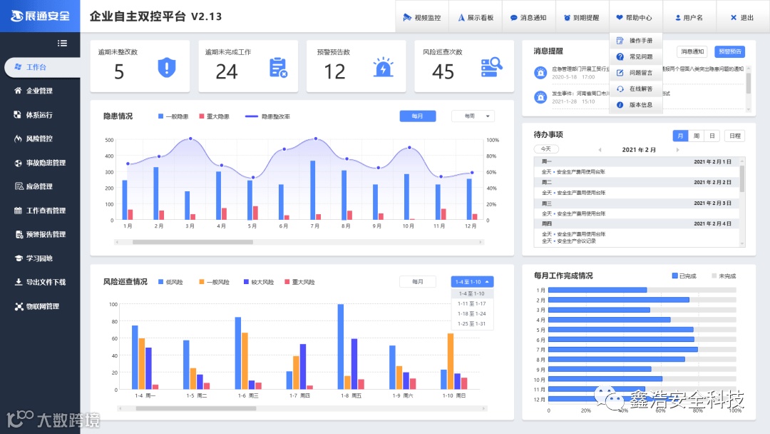 2.【新增】“工作台”界面升级优化,新增“风险巡查情况”统计柱状图功能,可按月、按周查看