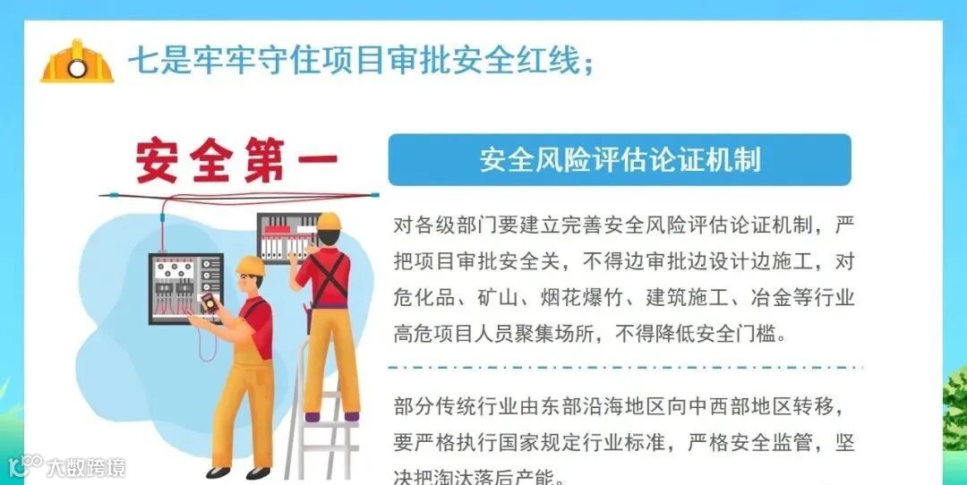 (七)项目审批安全红线把守情况。各有关部门是否建立完善安全风险评估论证机制。是否存在"边审批、边设计、边施工"情况,是否擅自降低危化品、矿山、烟花爆竹、建筑施工、冶金等行业高危项目、人员聚集场所安全门槛,是否对东部沿海地区向中西部地区转移的部分传统行业严格安全监管等。