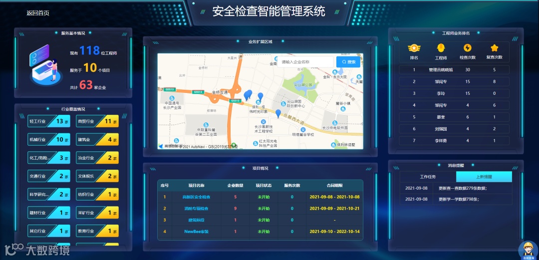 工程师业务排名、消息提醒等一目了然