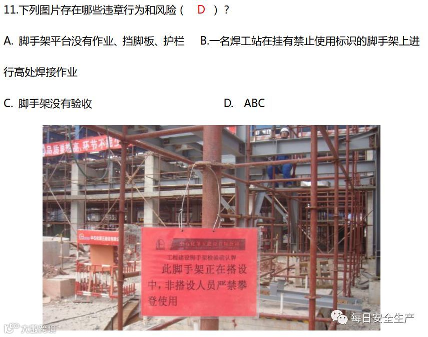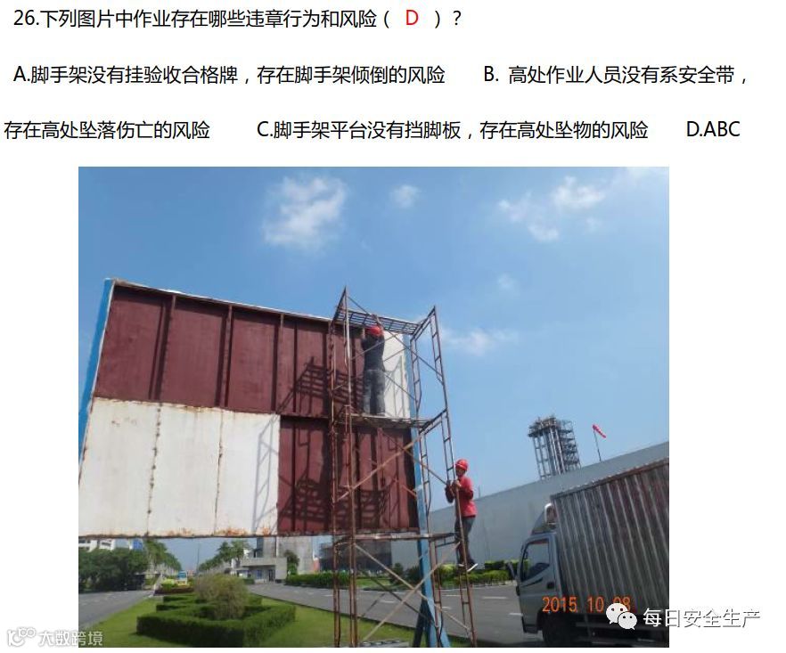 安全月来个安全知识答题是最常见的活动形式,但文邹邹的纯文字试题对于提高员工的安全意识真有用么?可以试试下面这种试题,根据现场作业行为图片制作的违章试题+安全生产百错图漫画,比纯文字试题强一百倍!