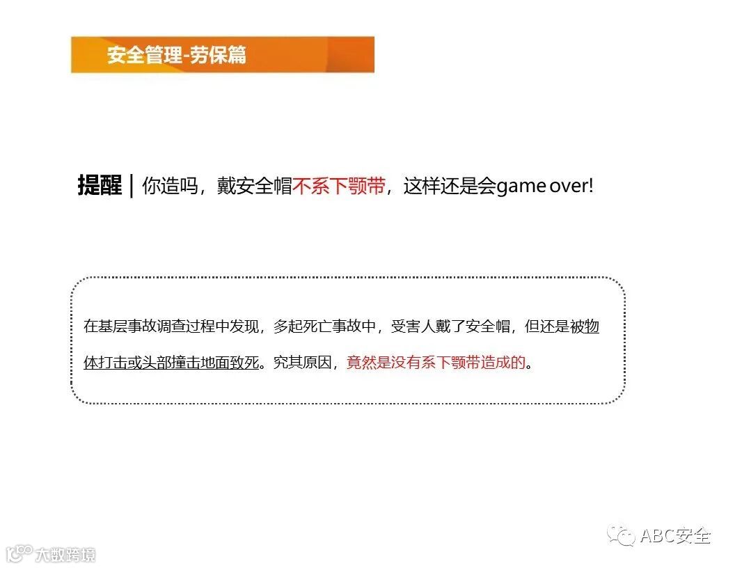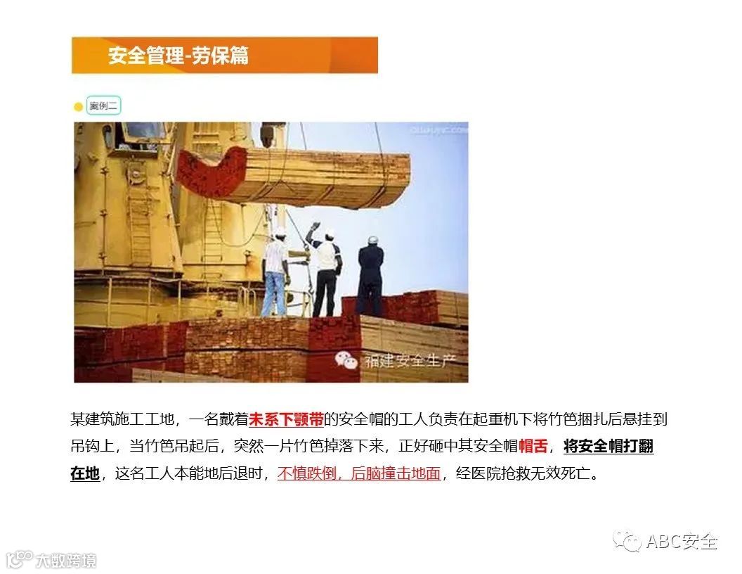 在统计众多事故过程中发现,多起死亡事故中,受害人戴了安全帽,但还是被物体打击或头部撞击地面致死。原因就是戴了安全帽但未系好帽带!