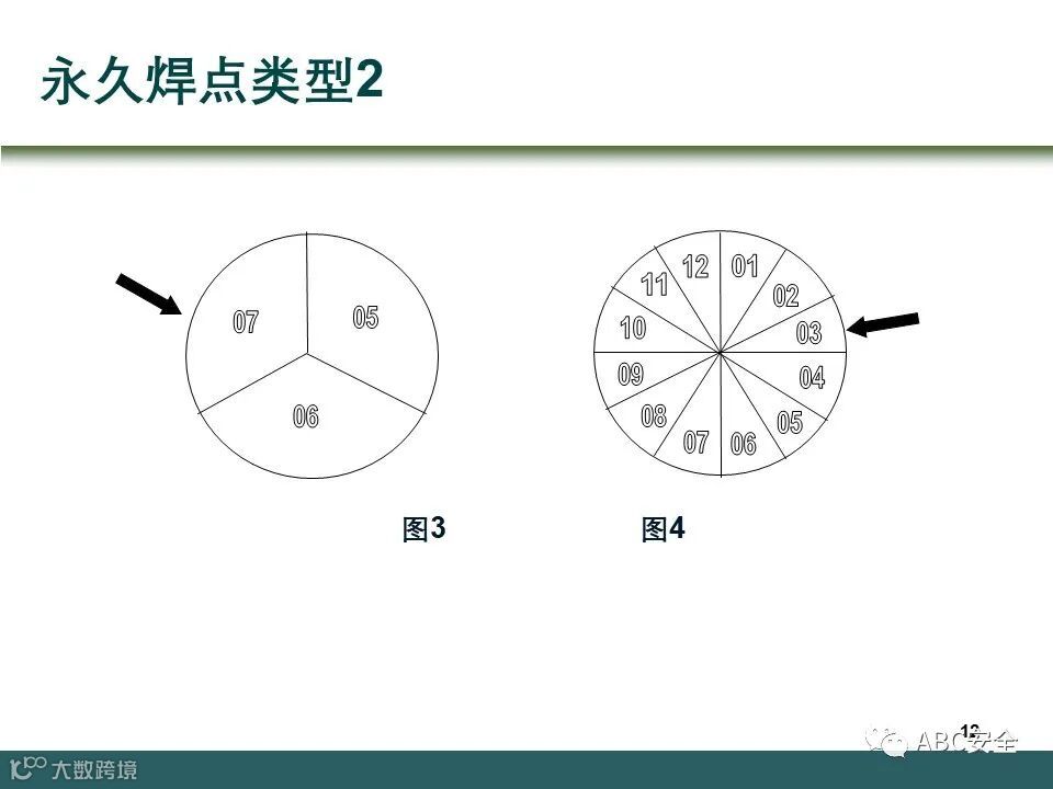 在标识的外侧,有1到12的数字,代表一年中的12个月,中间有2个数字(从00到99),代表了该制品的生产年份。而正中间的箭头所指向的数字,即为该制品生产的月份。