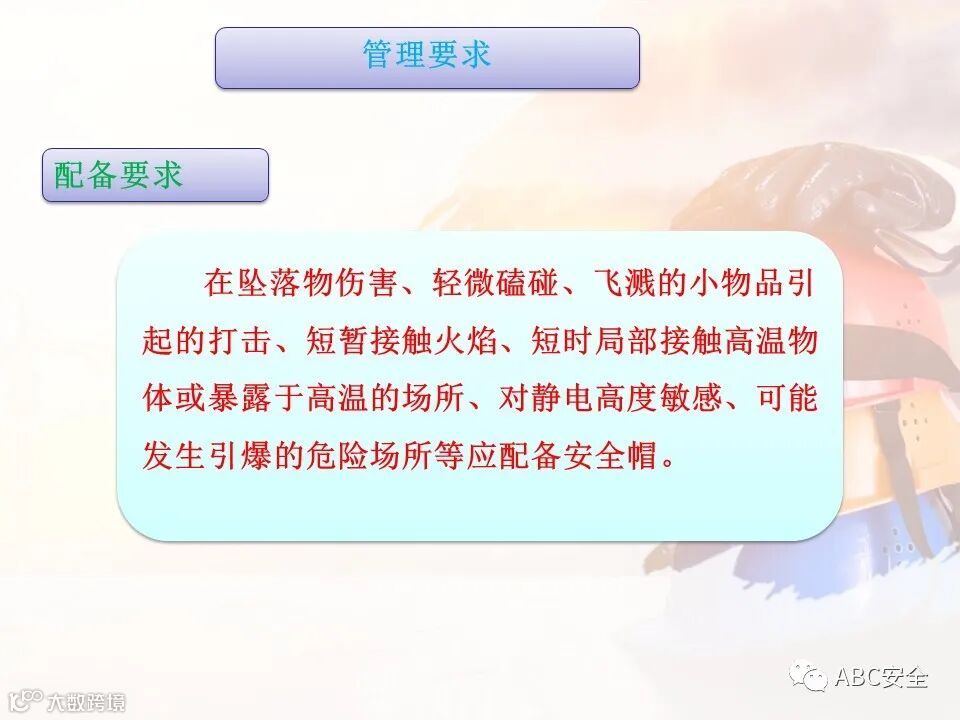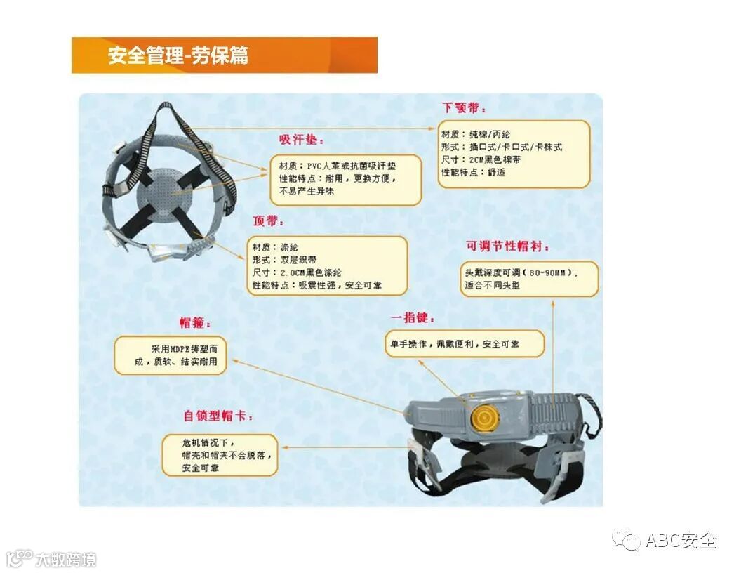 《安全生产法》规定,“生产经营单位必须为从业人员提供符合国家标准或者行业标准的劳动防护用品,并监督、教育从业人员按照使用规则佩戴、使用”;国家标准《安全帽》规定,产品说明必须声明“为充分发挥保护力,安全帽佩戴时必须按头围的大小调整帽箍并系紧下颏带”。