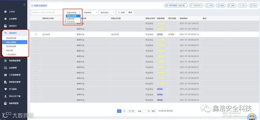 3、【新增】企业管控实现了过程管控,从风险辨识-风险评价-风险管控,逐级落实,责任到人。