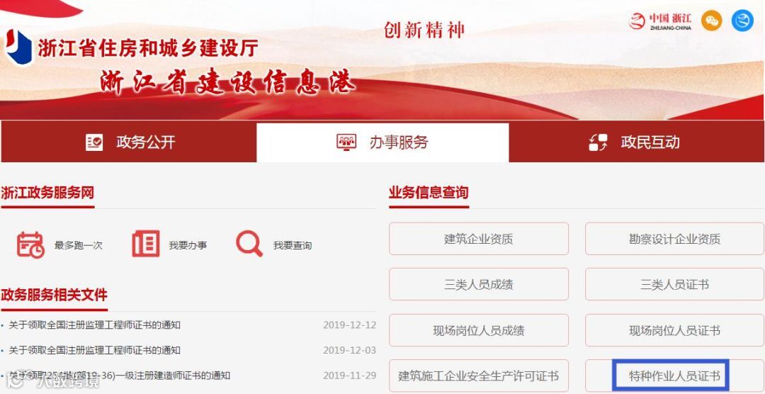浙江省住房和城乡建设厅官方网站http://jst.zj.gov.cn,依次点击“人员查询”→“特种作业人员”进行查询;或者直接登录: