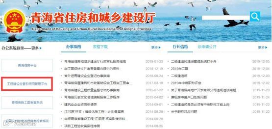 青海省住房和城乡建设厅官方网站http://zjt.qinghai.gov.cn,依次点击 “工程建设监管和信用管理平台”→“证书查询”进行查询;或者直接登录http://139.170.150.135:8071/dataservice/query/staff/list进行查询。