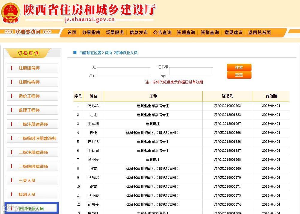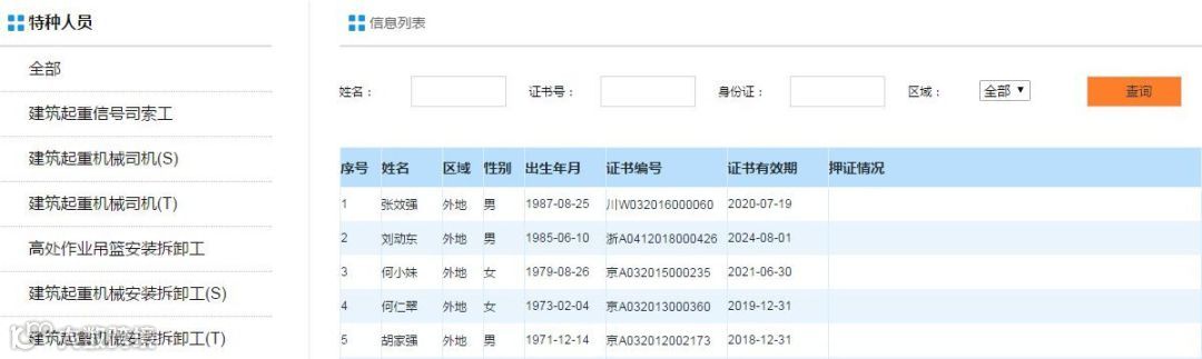 全国各省市建筑施工特种作业人员资格操作证书查询平台进行精心整理,各位大哥需查询建筑施工特种作业人员资格书的可在上方网站中查询,查询有助于施工企业对建筑施工特种作业人员资格证书的辨识能力,加强项目管理;如查询不到可前往当地发证机关进一步核实,如证件为假证可在12350投诉平台进行举报。