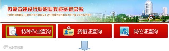 内蒙古自治区住房和城乡建设厅官方网站http://zjt.nmg.gov.cn, 依次点击“职业技能鉴定”→“特种作业查询”进行查询;或者直接登录http://zjt.nmg.gov.cn:89/Web/PersonQuery/cert.aspx 进行查询。