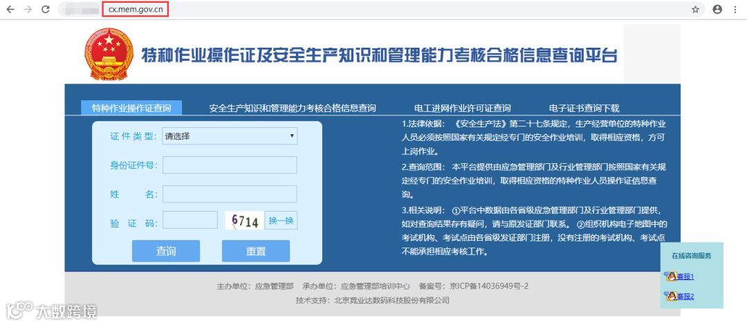 查询网址:http://cx.mem.gov.cn/