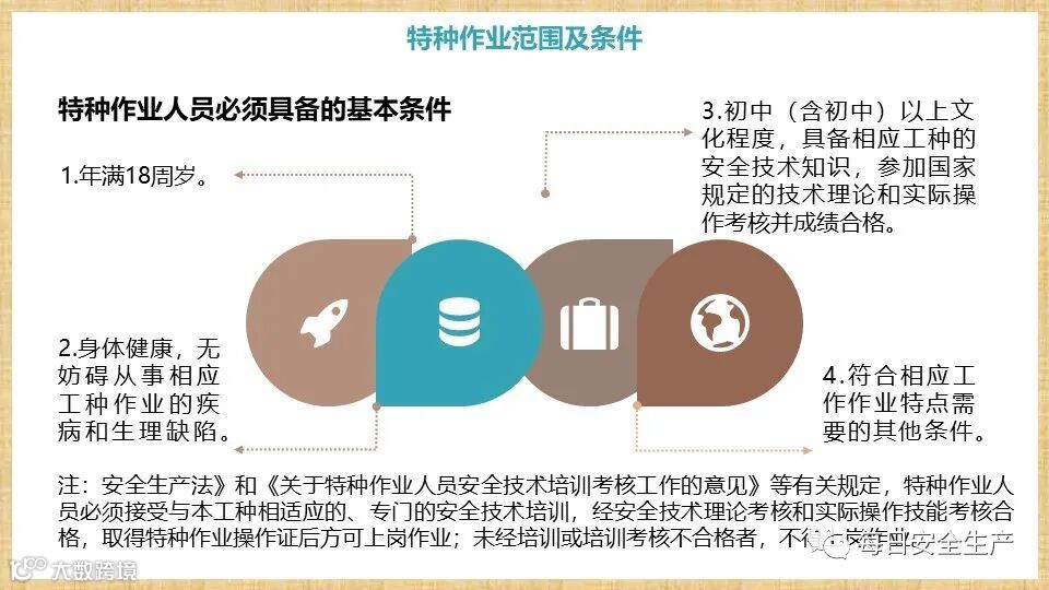 国家安监总局《特种作业人员安全技术培训考核管理规定》国家安全生产监督管理总局第30号令规定:特种作业是指容易发生事故,对操作者本人、他人的安全健康及设备、设施的安全可能造成重大危害的作业。特种作业的范围由特种作业目录规定。本规定所称特种作业人员,是指直接从事特种作业的从业人员。特种作业人员所持证件为特种作业操作证。