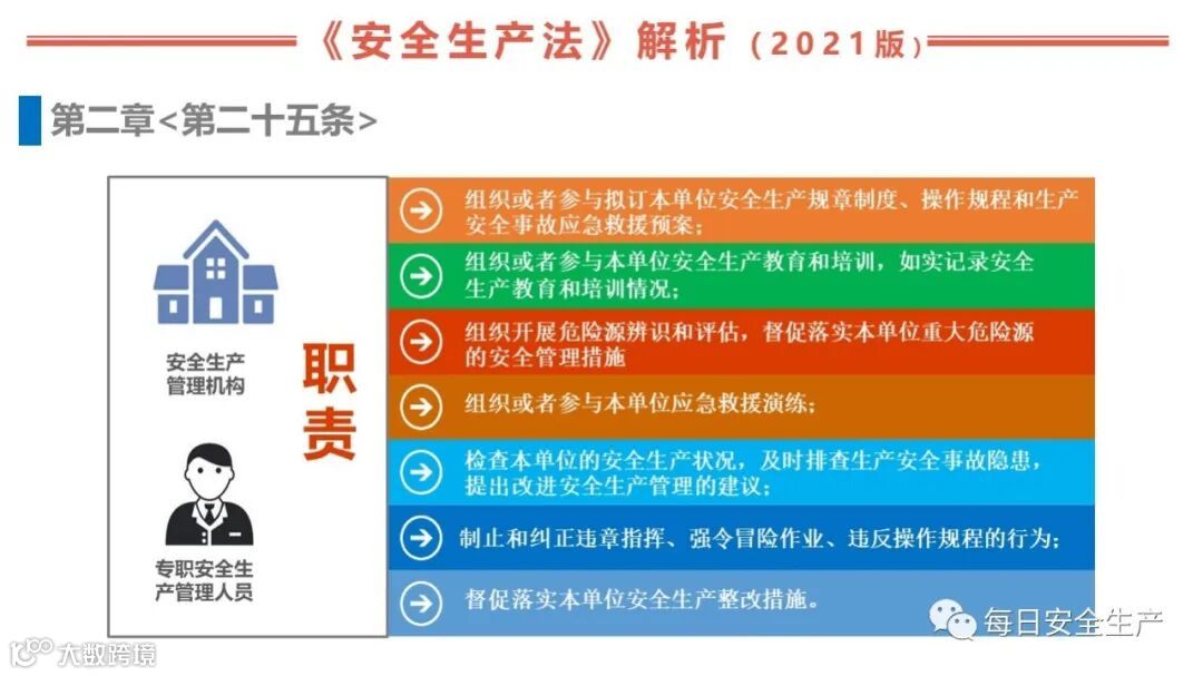 第二十五条 生产经营单位的安全生产管理机构以及安全生产管理人员履行下列职责: