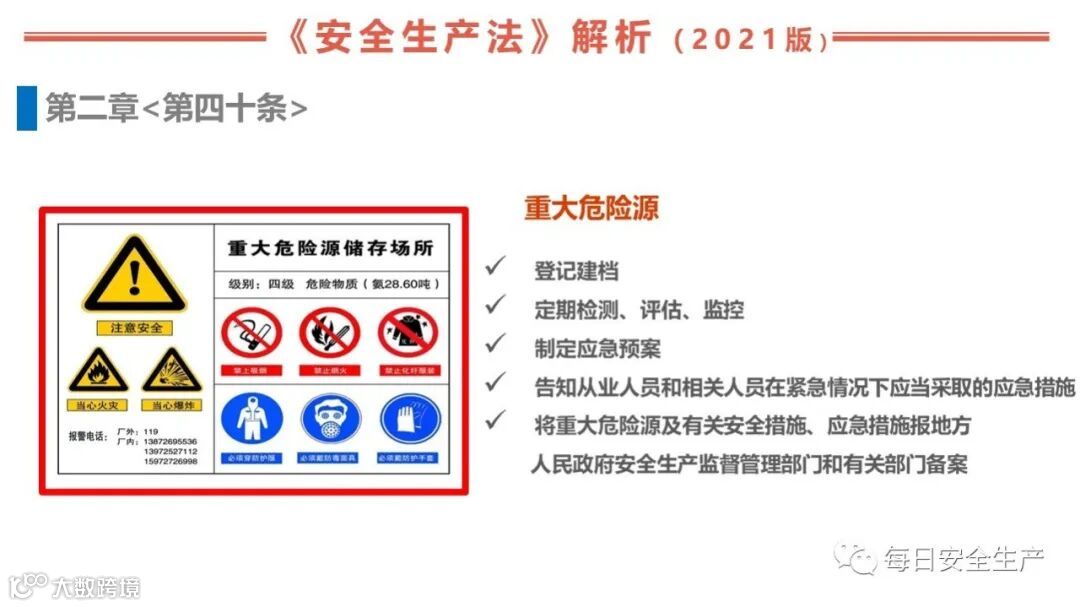 第四十条 生产经营单位对重大危险源应当登记建档,进行定期检测、评估、监控,并制定应急预案,告知从业人员和相关人员在紧急情况下应当采取的应急措施。