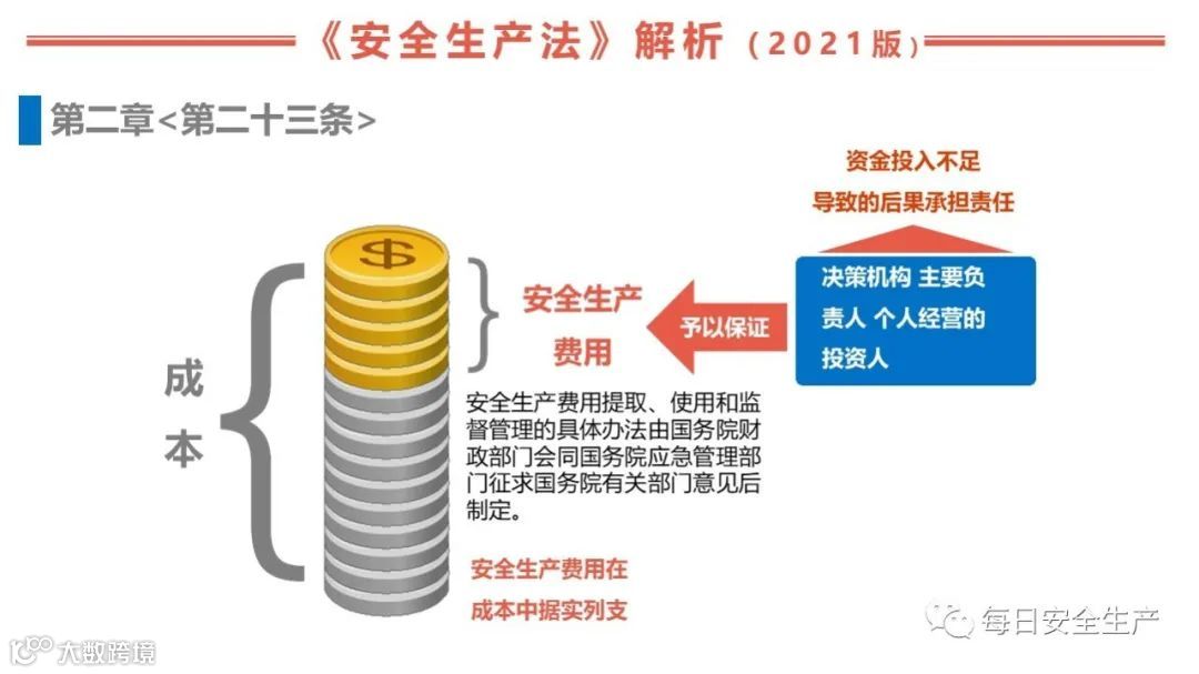 第二十三条 生产经营单位应当具备的安全生产条件所必需的资金投入,由生产经营单位的决策机构、主要负责人或者个人经营的投资人予以保证,并对由于安全生产所必需的资金投入不足导致的后果承担责任。