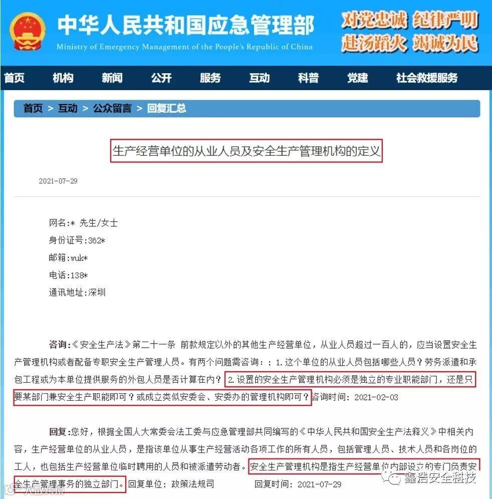 官方明确答复:企业安全生产管理机构必须作为独立部门设置。