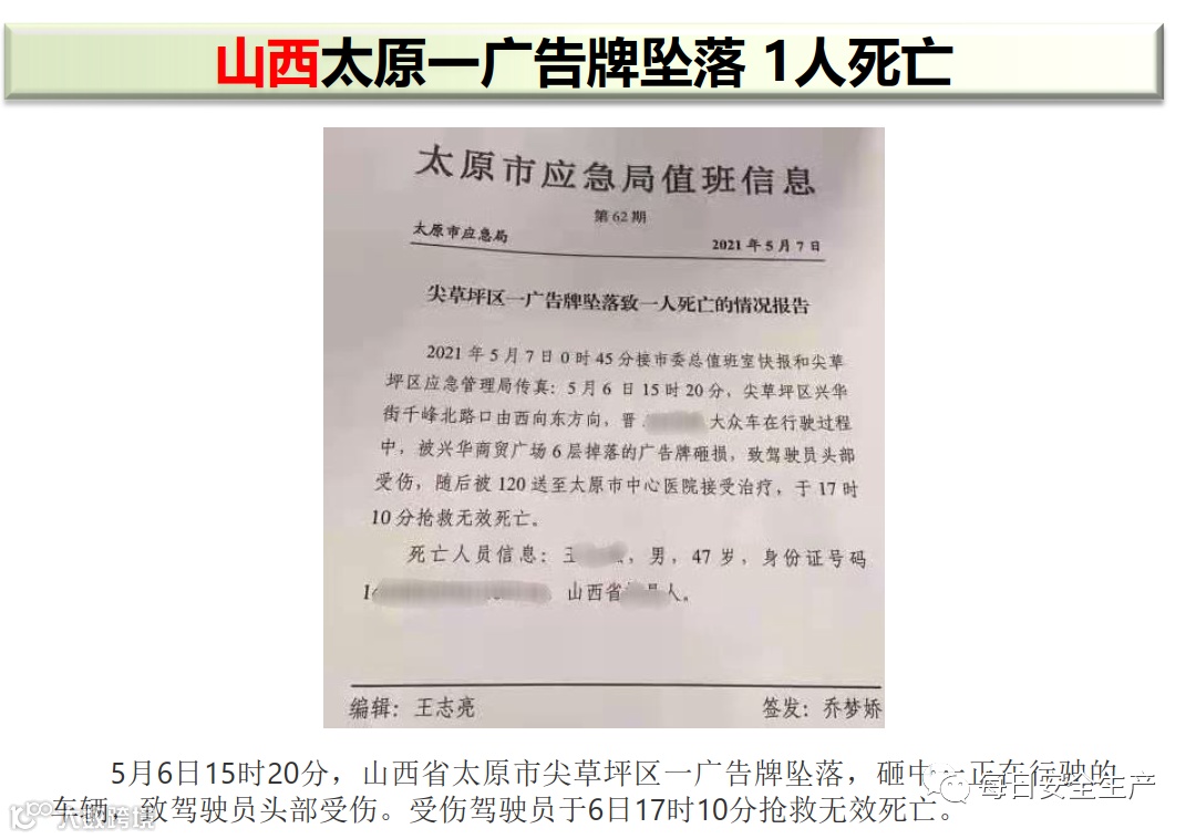一周事故及安全警示(2021年5月10日)