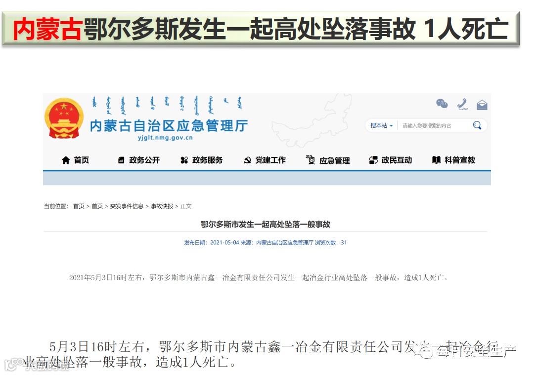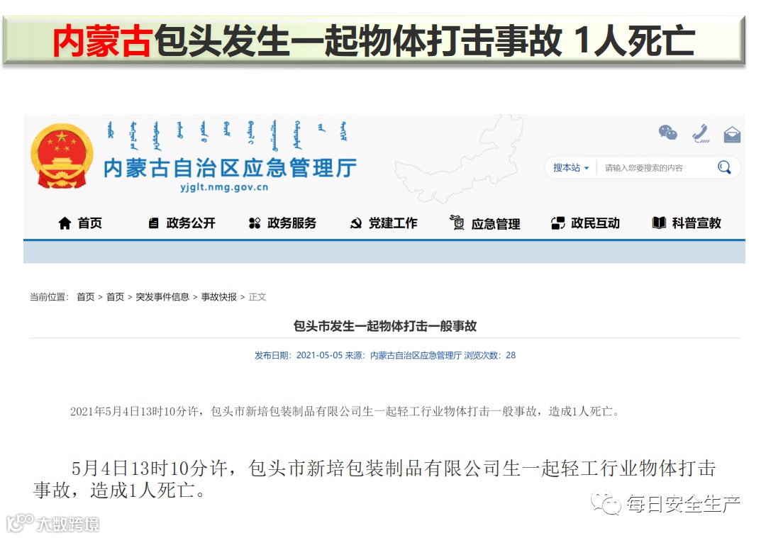 导读:一周事故及安全警示(2021年5月10日)