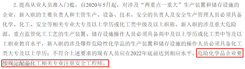 2020年4月,国务院印发《全国安全生产专项整治三年行动计划》提到,危险化学品企业要