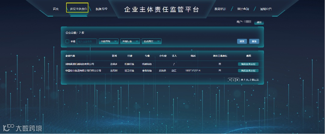 企业主体责任监管平台(俗称监管端),向全行业公开免费,实现企业落实安全生产主体责任智能化监管,全面提升政府监管效能。