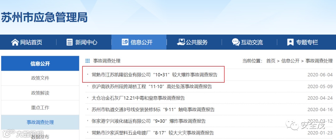 2019年10月31日16时05分许,江苏常熟市支塘镇工业园区江苏凯隆铝业有限公司熔铸车间在铝棒铸造过程中发生一起爆炸事故,造成4人死亡,2人重伤,直接经济损失约 817.1万元。近期,苏州市应急管理局公布了该起事故的调查报告。