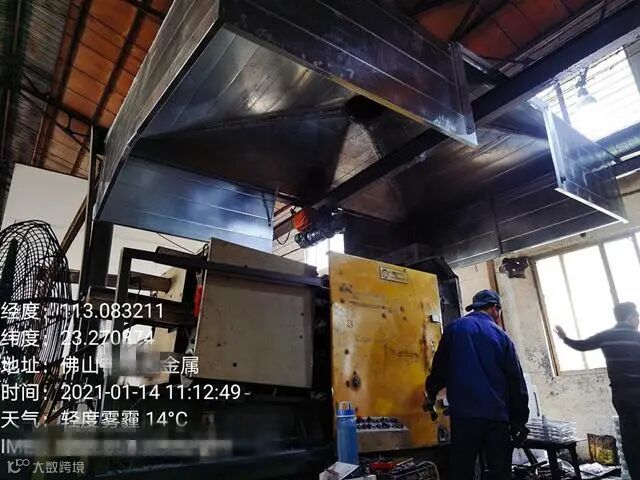 某金属制品厂按照要求对其压铸机集气罩进行升级改造,提高废气收集效果