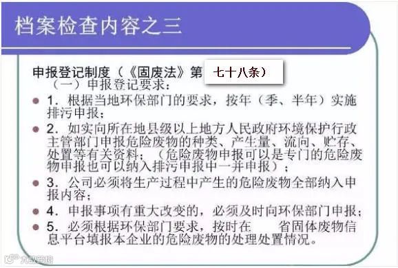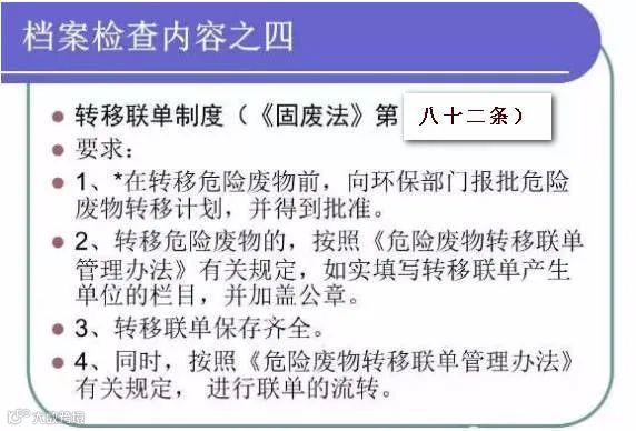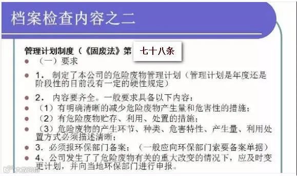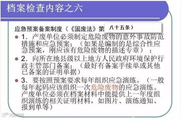 包括:危险废物管理计划制度、环评材料、危险废物经营许可证、危险废物管理台账、危险废物转移联单、危险废物处置利用合同、财务数据、危险废物应急预案(应急预案演练、业务培训记录)等。