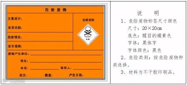 标签填写注意事项:危险情况和安全措施必须分别遵照《危险废物贮存污染控制标准》危险用语和安全用语填写。