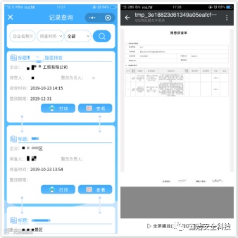 用户只需准备一部手机,便可通过微信小程序实现每日检查情况的实时录入,随即上传现场排查图片,并提交生成隐患排查单。系统特设的一键打印安全隐患报告功能,可配设迷你打印机实现互联,排查完隐患,可现场随即出具隐患排查报告,支持在线手动签名确认,便捷而高效。