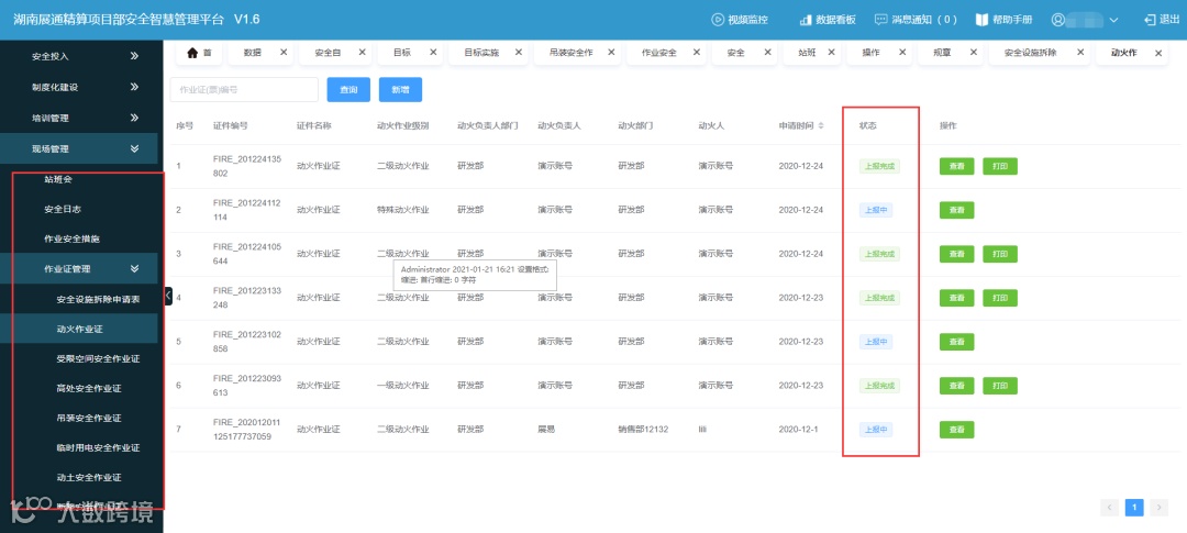 结合项目的基本情况,构建施工单位和分包单位安全生产信息库;根据“一机一档”原则,对施工设备建立数字化档案管理;建立健全应急管理工作机制,实现资源一键调配,应急流程/演练标准化处理。