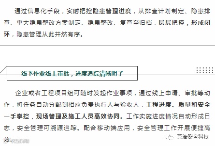 平台直观呈现施工现场各区域的风险等级分布、风险点分布、项目风险分布等情况,通过风险辨识-评估-管控-巡查的全过程管理,促进工程项目落实风险分级管控,压实各管控层级的管控周期与管控责任,实现全员参与的风险巡查。