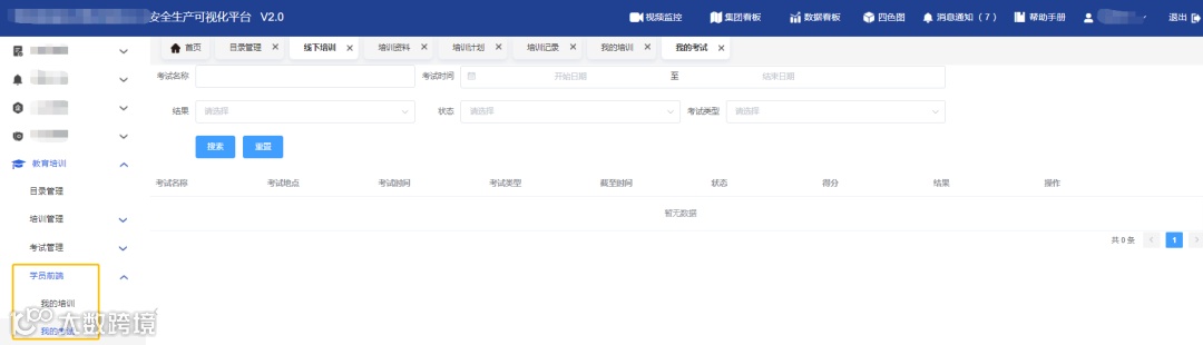 在用户的学员前端完成应参加的培训和考试,可随时查看自己的培训及考试结果,便于掌握学习进度与学习成效。