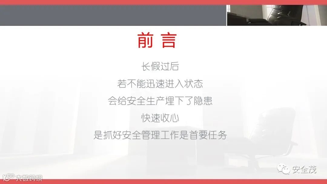 节后复工复产时段属于各类生产安全事故易发高发时期,各企业要对节后的安全生产工作格外小心,克服“假期综合症”等不利因素影响,制定可行的复工复产方案,开展一次安全责任承诺,开展一次全员安全教育,开展一次安全专题班前会,开展一次全面的安全检查并切实加强生产现场安全检查监督,将节后复工复产安全工作抓早、抓细、抓实,坚决杜绝生产安全事故发生。