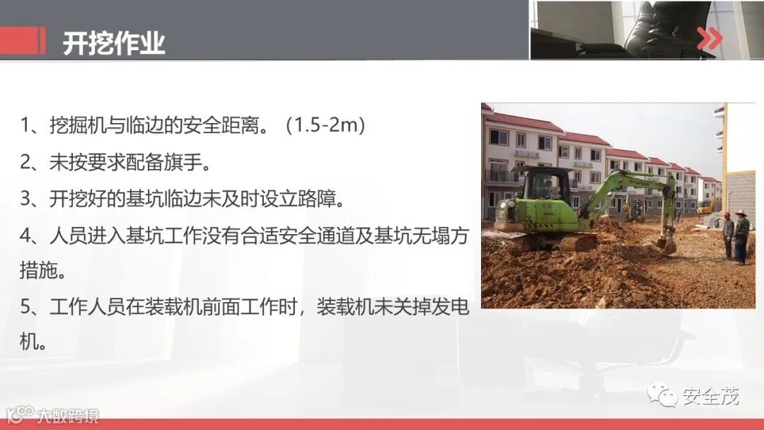 1、挖掘机与临边的安全距离。(1.5-2m)