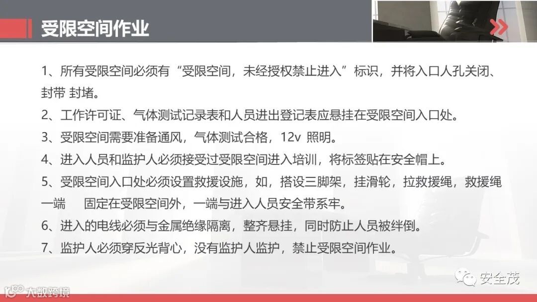 3、受限空间需要准备通风,气体测试合格,12v照明。