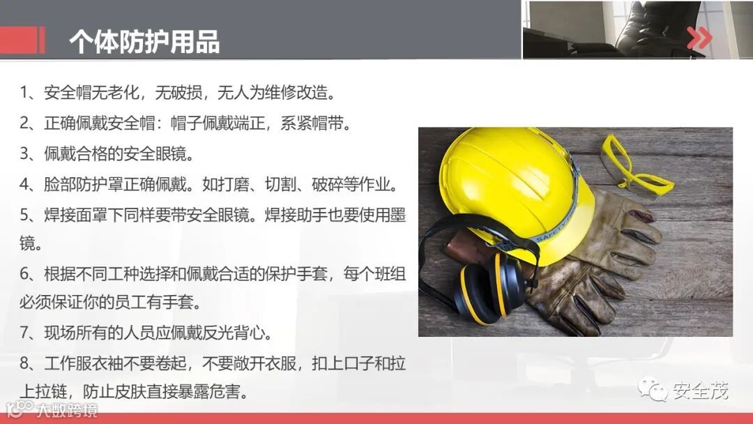 4、脸部防护罩正确佩戴。如打磨、切割、破碎等作业。