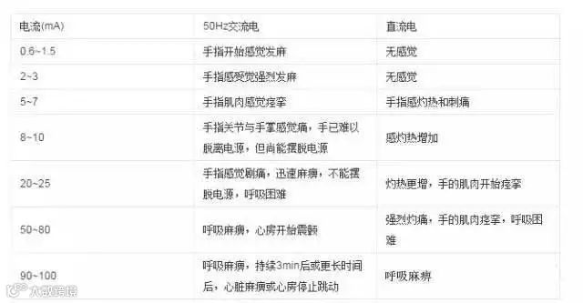 (1)感知电流:能够引起人们感觉的最小电流。感知电流值因人而异。总体上成年男子感知电流平均值约为1mА,而成年女子约为0.7mА;