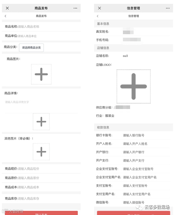 可查看供应商微信角色,账号,密码,商家logo,姓名手机号,设置商城扣点。