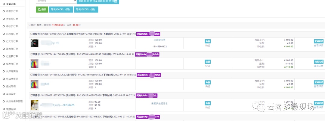 查看供应商提现明细。