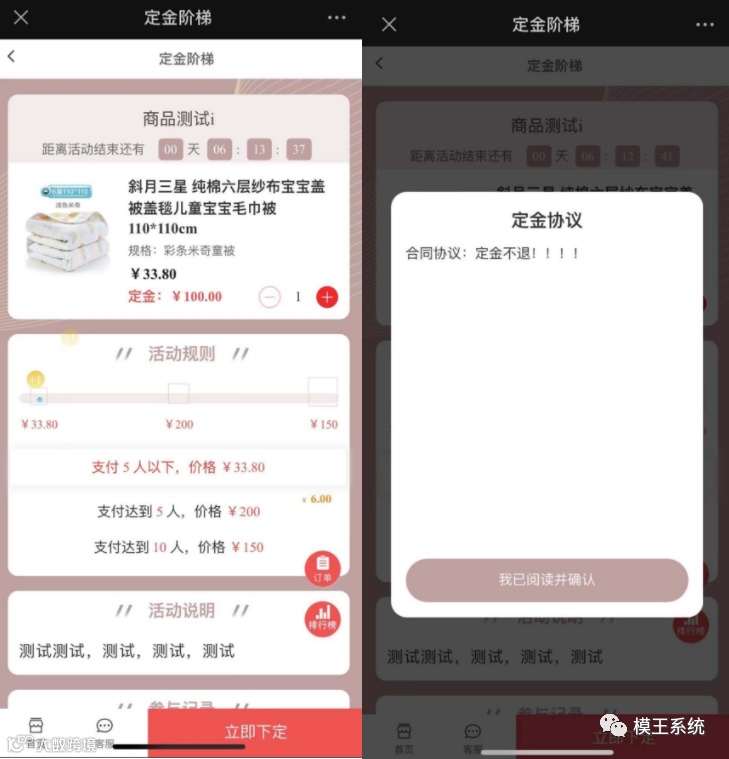 在小程序商城中采用预售+尾款的形式结合定金阶梯活动,有效解决库存备货等问题。