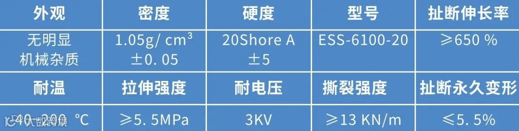 ESS-6100-H20是一种采用特种有机硅橡胶和无卤环保阻燃剂制成的低硬度阻燃硅胶材料。本品不仅保持了硅胶材料固有的无毒、环保、耐高低温等优点,还通过特殊的配方与工艺,实现了极低的硬度(20 Shore A))与卓越的阻燃性能的完美平衡。其出色的物理机械性能和广泛的环境适应性,使其成为对安全性与可靠性要求极高的应用场景的理想选择。