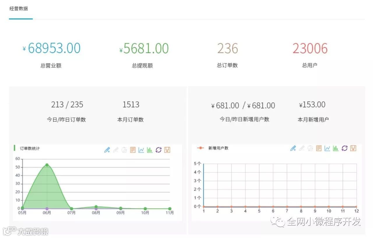 在后台的管理层面也进行了深度的开发,对每个小程序的销售数据进行统一管理,省时、省钱、省事