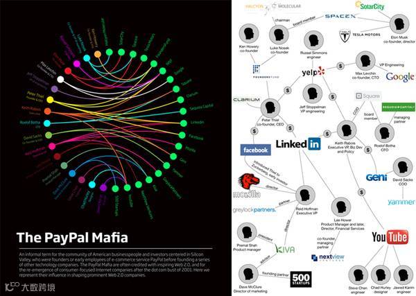 他们包括:Peter Thiel,LinkedIn创始人Reid Hoffman,钢铁侠Elon Musk,Slide创始人Max Levchin,红杉合伙人Roelof Botha,Yelp创始人Jeremy Stoppelman,YouTube创始人Chad Hurley和Steve Chen,Yammer创始人David Sacks等等。