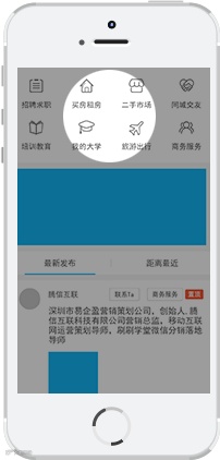 在这里可以找到您需要的所有信息,如招聘求职、买房租房、二手市场、同城交友、商务服务、美食娱乐、教育培训、人才市场、旅游出行···