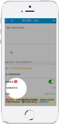 1.免费发送同城广告,付费置顶
