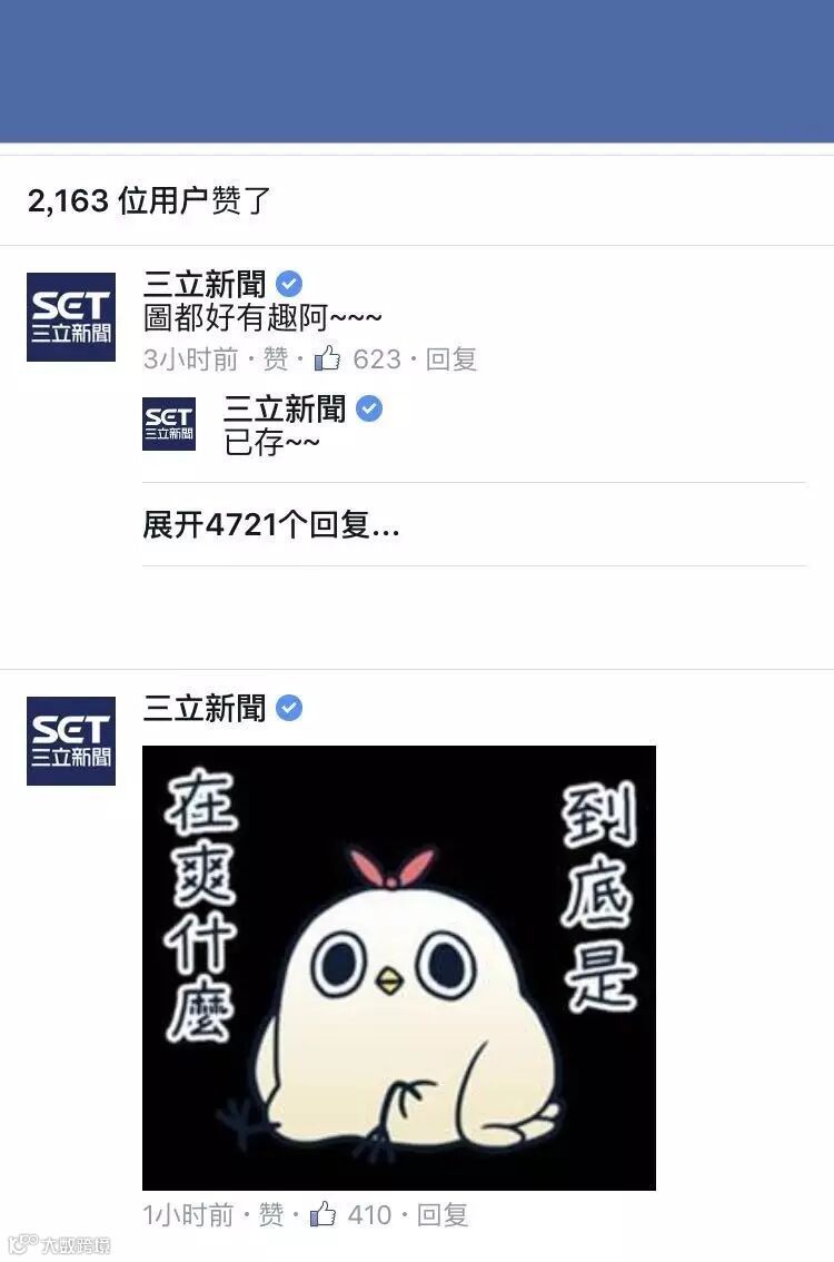 七点过后,六路纵队浩荡出征,目标地是三立新闻主页、苹果日报主页等支持TD、GD的媒体以及相关艺人主页。表情包、八荣八耻、乡愁、七子之歌·台湾等大招瞬间就将FaceBook给屠版了。