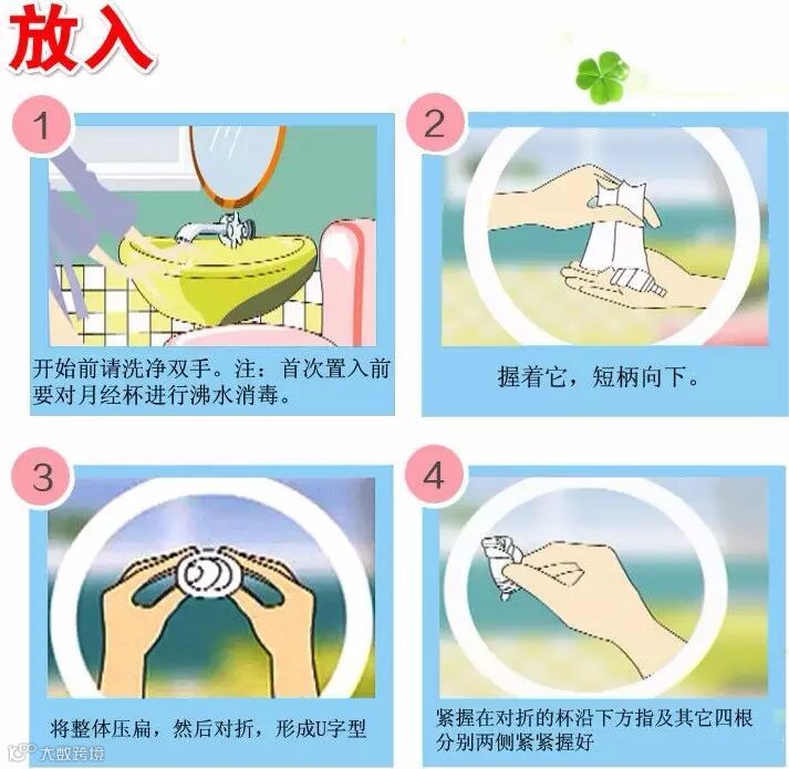 月亮杯原名叫Menstrual cup,中文翻译过来就是月经杯,顾名思义就是用来装月经的杯子。是的,TA是一个杯子,可是TA能装大姨妈,还能塞进去(因为是硅胶做的)!具体怎么操作,请看截取自度娘的图,自己感受下……