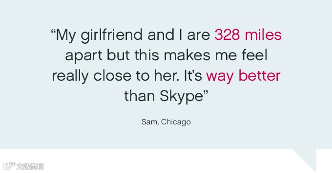 这是用过Pillow Talk的用户的感受,相对于微信、Skype这些实时通讯软件,Pillow Talk更注重的是感受。有些时候,手机需要工作,不能一直被电话或通讯工具占用,也有些时候,分隔两地久了,话题也许渐渐少了,聊电话也不知道聊什么,可是不打电话好像又会让对方感觉被忽略了。可是,如果在这时候,有了Pillow Talk,听着对方的心跳声,感觉对方好像就在自己的身边,不需要说话,静静的就很好。