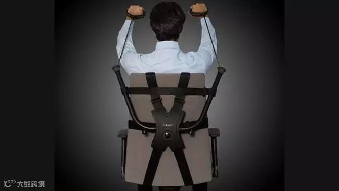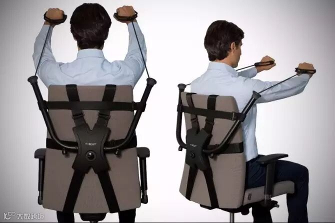 OfficeGym是一家外国公司专门为上班族而设的一套健身装备,无需占用太多空间,只需要安装在椅子背部,就可做简单的拉伸运动。OfficeGym可以连接至椅子靠背,有两对尼龙带把它连接到椅子上,实际的健身设备包括两个滑轮,从两条铝管拉出,可以上下移动调节,用户可对胸部、肩膀、手臂、背部、腹部和腿部等部位进行针对性的抗阻训练。