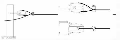 中间收紧器是一直挂在前端围栏上的,安装合金丝时,把合金丝从中间紧线器侧面的圆孔穿入,再对准并穿过其中间的中缝,最后通过另一侧面的圆孔穿出。