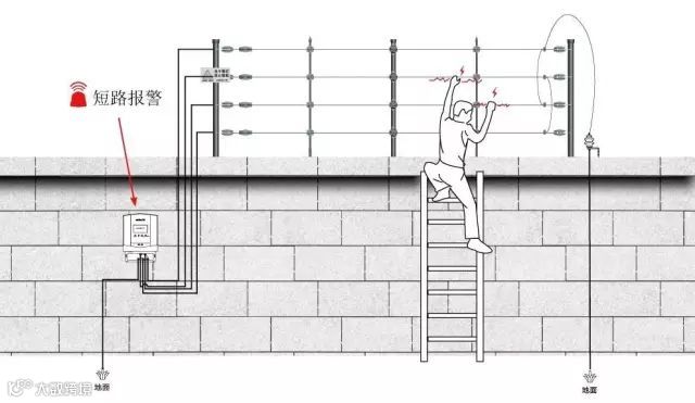 2) 接地的原则,接地点一般选择在电子围栏的末端,但是,当防区加入避雷器时,避雷器的接地点应在电子围栏的始端。