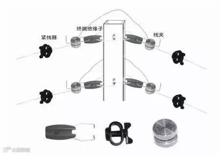 3、有围栏控制器的地方应在终端杆顶部加入一条或两条(相互垂直)避雷器固定件。